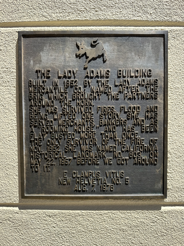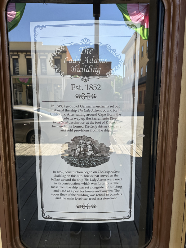 Built in 1852 by the Lady Adams Mercantile Co.; named after the brig which brought the partners around the Horn.
