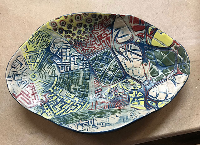hand built and pressed into deeply etched plate