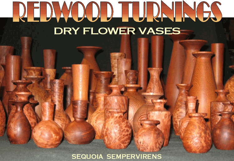 ALL VASES ARE SPINDLE TURNINGS WITH DRILLED CENTERS AND FINISHED WITH A PENETRATING OIL.