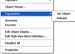 Another Modification option that is available from the object specific pop-up menu is "Edit Multi-view Block Definition..." You can read up on this subject under Multi-view Blocks but I included the topic here because you may find that some Tags don't appear when you want them to and this may be a quick fix that you will need to know about. If you have one or more Tags that don't display for the Reflected Display Representation or vice-versa, for example, you can use the Add... button to Add the Block Name for the Display Representation you want and set the View Directions to Top. This Modification will affect all of the same Tags in the current drawing.