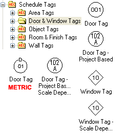 You can basically break the scheduling system down into three primary categories: Tags, Data and Tables. Tables require Data and Data is often, but not always, controlled by Tags. When you tag an Object, data is usually Attached at the same time. You don't always need Tags to create Tables but you definitely need Data. An example of this can be demonstrated by using the AddAllPropSets command to fill out a Door or Window Schedule without tagging any of these Objects. |