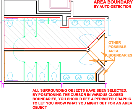 ![]() Illustrated above I show how Selecting a large set of Walls and various other Objects will do a fairly good job of ignoring non-essential Objects to focus on the boundaries defined just by the Walls. By hovering the cursor over potential boundaries, you should see a temporary boundary line form to show you the results of the Area Object before you actually "Pick". Be careful about hovering too near Wall Objects because you can actually create Area Objects of the boundary inside Wall edges. |