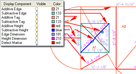 - Component Layers - Example Illustrated to the right I show an example Area Object with a rectangular hole that was created by Subtraction. This hole acts as a "Subtractive" region and thus has corresponding Display Components such as "Subtractive Edge", Tag and Height. You can change the Type of Decomposition on the Decomposition tab of the Display Properties dialog which also affects how these Display Components appear. |