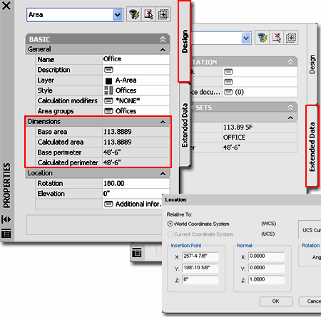 As an object, the Area Object is basically little more than a Polygon with no options for three dimensional data such as that offered by Space Objects. Area Objects can be drawn much like any Polygon or created by Converting existing closed polygon shapes. Their primary function is to store area and perimeter data but you can convert Area Objects into Polygons should you ever wish to go use them as a source for Walls or other Objects. Area Objects can be drawn in alignment with any current UCS icon so they can also be used to assist in surface calculations but this is not something I have personally explored in any depth. |