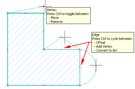 ![]() When you Add a Vertex, you should notice that you actually acquire two Grips: one controls the position of the edge and the other controls the position of the vertex point itself. |