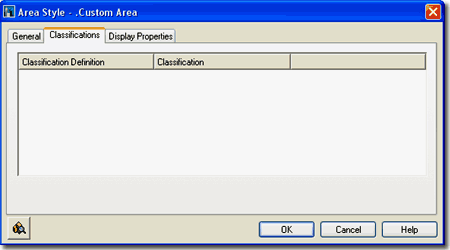 The subject of Classifications spans across almost every single Object Style and in some cases, such as with Area Styles, I am not quite sure how, when and where you would employ this option. Since Area Objects were designed to work with Area Groups whose function is to provide solutions for Classification, Organization and Calculation among other things, this form of Classification seems contradictory. Having said that, you just never know when something will come in handy but since I still haven't used Classifications with Area Objects, I leave the blank image to the right. Generally you will not have any options on this Tab but if you have created at least one Classification Style that has been set to "Apply To" Area Styles, you will be able to use it here. The range of use is really up to your imagination but it is fairly obvious that Classifications can be quite handy in Schedules. This topic will be discussed further under Part 18 - Schedules. You can also read a bit more about how to create Classification Definitions in Part 1 - Display. |
