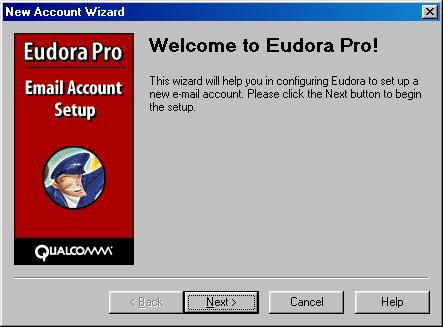 This is the Eudora pro setup wizard, which will launch upon first-time