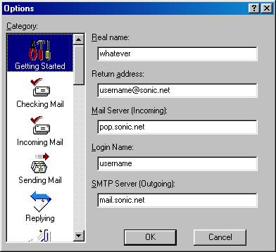 That's all that is really required, but here are some other categories to look at for saving password, leaving mail on server, sending immediately or queuing outbound messages, etc.: