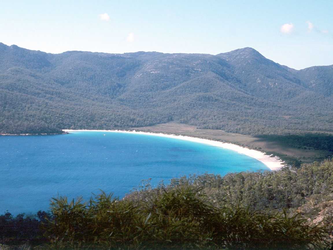 on a penisula that extends out into the Tasman Sea. Wineglass Bay is a white