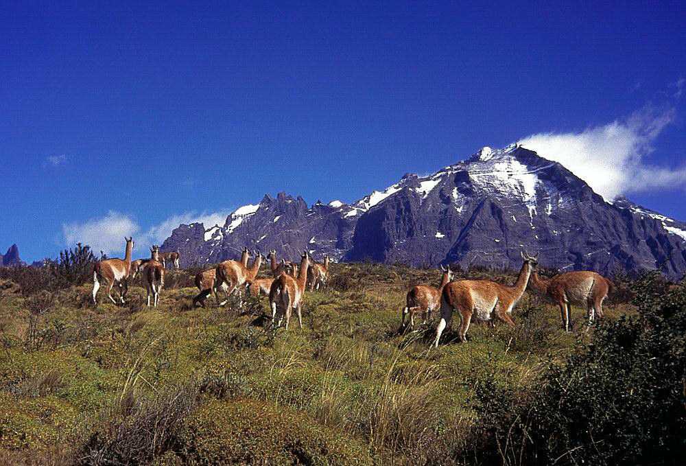 Wild herd of Guanacos (South American Camels)
