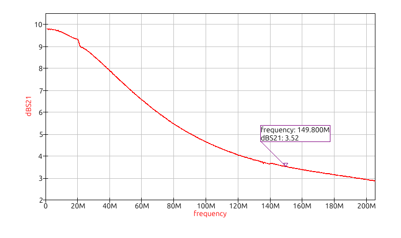 When used with the TinySA Ultra BW is set to 300 kHz for a 0-30 MHz span resulting in a 10*log10(3e5) = 55 dB offset such that kTB will display as -174 + 55 = -119 dBm. The TinySA can be set to display Marker noise power directly in dBm/Hz.