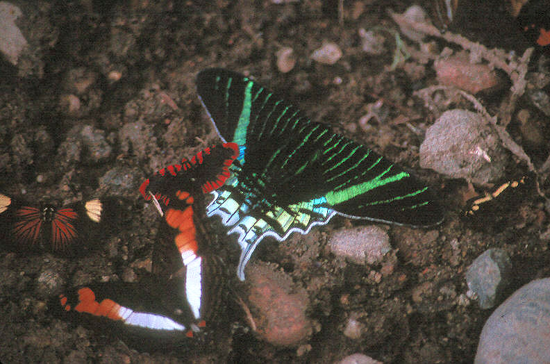 The red-and-black butterfly in the photo is a Blood-red Skipper (Haemactis sanguinalis).