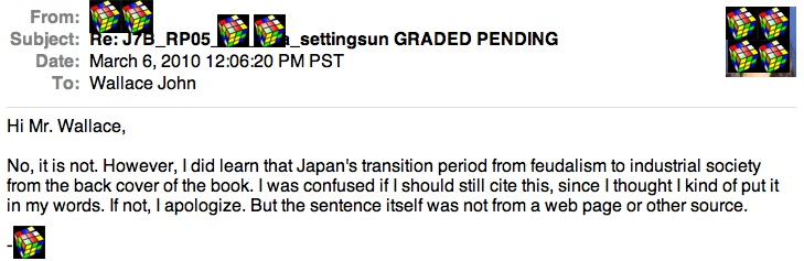 Second, I really want you to learn interesting things in my class; cheating, of course, short circuits that process — that’s obvious — but what might not be obvious is that it obscures my understanding of your understanding. I can’t tell any more what work is yours and what is just imported, and so on. Students can, and do, choose not to learn. But I am also free to try my best to teach you. Plagiarism and such really are a huge road block.
