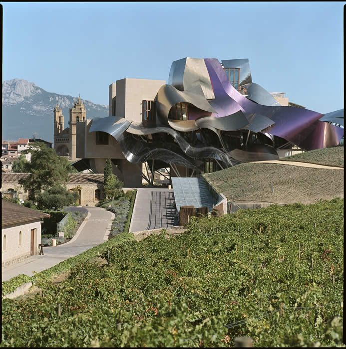 Newspaper Foreign Travel “Underwear,” Javier explains as he hands me a teeny something. Javier discretely removes himself while I disrobe and study the “underwear.” Is it this string that goes in front, or is it the slightly wider string thing? Deciding on a fifty-fifty chance that I have it right, I slip into a foaming tub that wafts red wine in its bubbles and steam. I steep. Bliss in Rioja. How times are changing, and quickly so, in this the most tradition bound of Spain’s wine regions. It seems but yesterday that the only reason to strip off one’s clothes and jump into a vat was to stomp Rioja grapes, not to wallow in a wine-flavored bath, or be slathered in a mixture of grape-seed oil and brown sugar, or massaged with tempranillo grapes fresh off the vine at the latest venue of an ultra-luxurious French spa chain. Or to ogle the architecture that has sent the staid Rioja region reeling ........... |