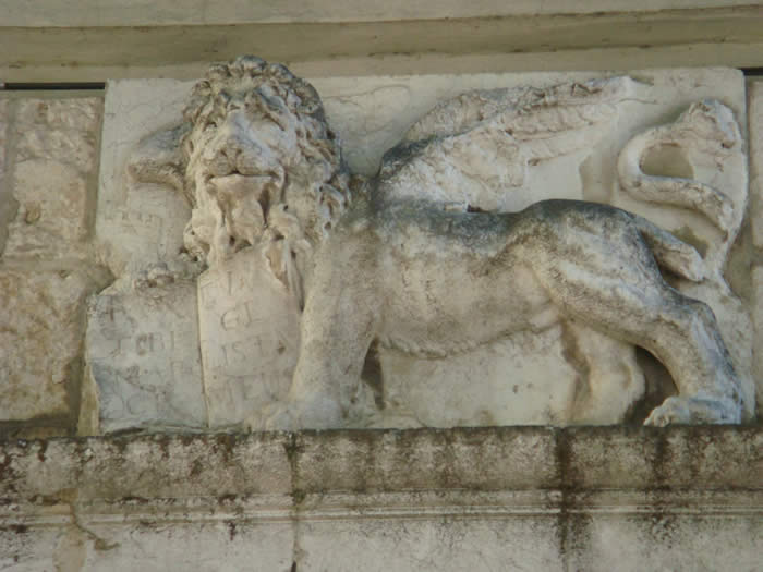 ADRIATIC - The winged lion of Venice, sculpted in stone, stood high above us just beneath the tip-top bronze bell of St. Mark's Torre dell'Orologio, looking down on the populace as if it owned the world.