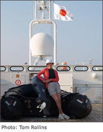 I am circling a marked "jogging path" of but 70 meters. Twenty-two times around equal a mile if I extend the designated path to round a line-up of teak deck chairs forward and to clear the edge of a stack of Zodiaks aft. Sixty-six times around complete my rather dizzying, daily, three-mile ritual aboard the small-ship Odyssey - a morning ritual that by midway on this twelve-day cruise through the islands of Japan I've come to think of as some sort of weird, meditative, Zen experience...... "Sailing into Japan" |