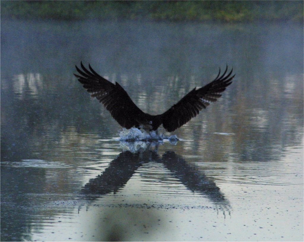 Images taken early morning. Osprey fishing on golf course lake. Had to use