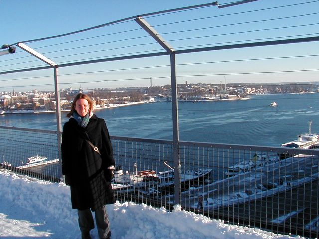 Sweden Pictures -- Kristen at the Katrinahissen overlooking the Saltsjon.