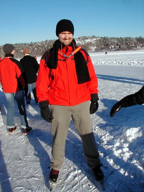 Sweden Pictures -- Eric with is Swedish skates, skating on lake Norrviken north of Stockholm.