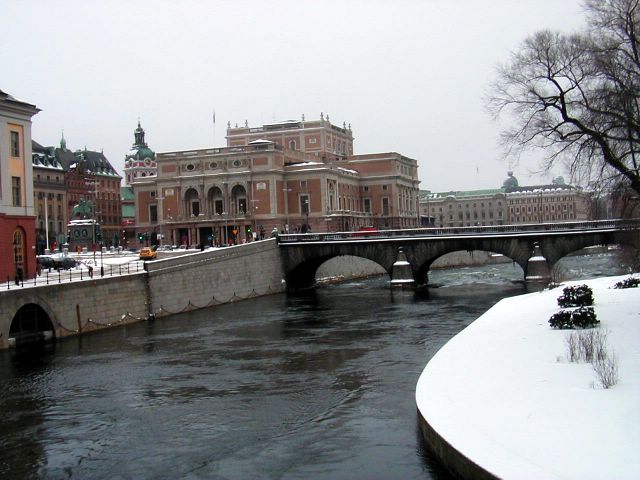 Sweden Pictures -- Lake Malaren as it enters the Baltic Sea near the Stockholm Opera House and Swedish Parlement.