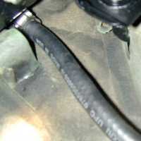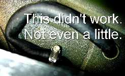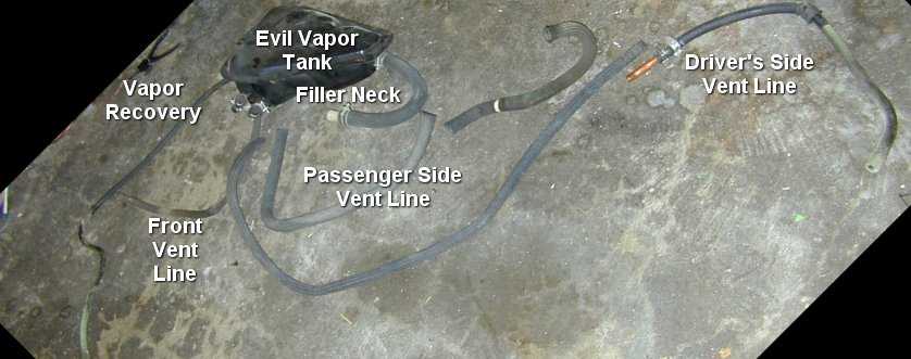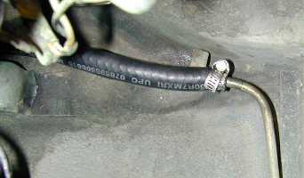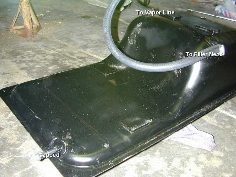 it's time to figure out how to vent the tank. As the engine draws the gas, it creates a vacuum, so there needs to be a vent to the atmosphere, but an indirect vent, so you don't get all kinds of stanky fumes. I used the small vent line on the top front of the gas tank, and connected it to the original vapor line to the engine bay. I had to do just a little bit of tweaking, nothing major at all. |