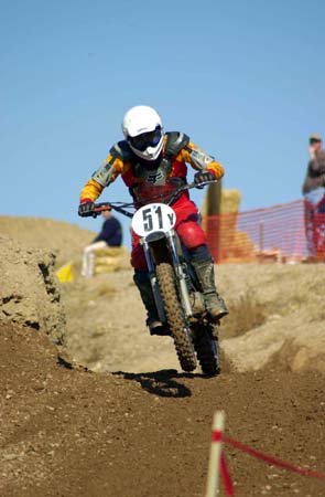 The Elsinore restoration is complete and I'm back at the races. (I've got about 5 grand into this puppy now.) Additions include a set of reeds, porting, custom pipe and a whole bunch of mods to the frame and suspension system. This scoot now has a great power band and a lots of extra ponies. One of the tricker Elsinores on the vintage scene. Almost like a modern bike. This bike helped me take the Pacific Northwest 50+ Intermediate Championship for the 2003 season. Racing and wrenching 30 year old bikes is a kick in the arse. Vintage MX is bikes 1974 and older. If any of you get the hankerin to get back into it drop me a line. And check out the American Historic Racing Motorcycle Association (AHRMA). Lot's of old legends such as Dick Mann, Brad Lackey, and Jim Pomeroy just to name a few. |