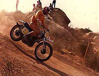 Now having said all this and outlining what has been a most interesting life over the part 35+ years I will say that nothing... absolutely nothing.... has every matched my years of desert racing. Several of my good friends I met on bikes. In fact I met my best friend after the two of us battled it out over 70 miles for first place in the Masterlinks Hare & Hound back in '71. I also met my ex while I was laying on the ground pucking my guts out under a buddies truck at the finish line of the '72 Barstow-to-Vegas race. (I had been running between 15th and 19th overall until I got real sick about 20 miles from the finish line.) She said hi, I hurled... seven months later we were engaged. Fond fond memories. (Well ex-fiancé actually but since all my friends have real ex's and I've never been married I guess she's the closest to qualifying for that dubious distinction.)