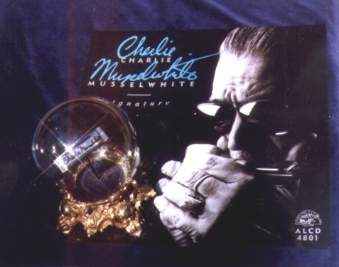 #00003 Memphis Charlie's got the blues- autographed harmonica given to me by Charlie Musselwhite, which I have appropriately enshrined for posterity. Charlie was born and raised in Mississippi and Memphis, and drifted north in time to be a part of the legendary 1960's Chicago blues scene. He cut his bluesharp teethe with many of the blues icons and originators including Muddy Waters, Howlin' Wolf, Luther Tucker, etc. As both a traditionalist and innovator of blues harmonica Charlie has expanded the parameters of blues harp into Latin music and beyond, and has gone on to become the elder statesman of the blues harp, winning six W.C. Handy awards. Check out his website and tour schedule.