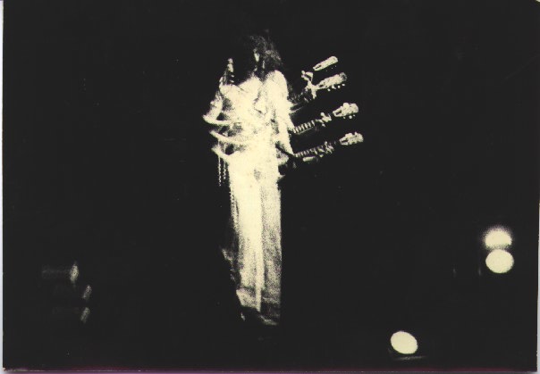 Photo taken by my friend Nancy Peluso at our first Frank Zappa concert, Berkeley Community Theater 1974 with Pentax camera. Frank was always doing stuff like this.