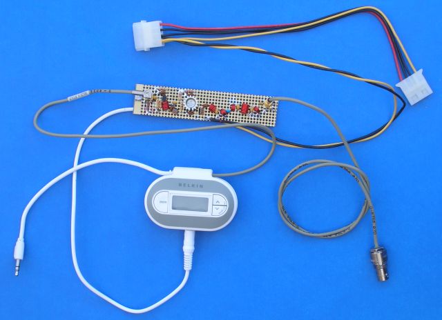 Example of a complete TuneCast system with all cables attached. RF output power is about 120 milliwatts. Although not verified with this setup previous road tests have shown this much power can be heard up to 3 miles away using an outside 1/2 wave vertical transmitting antenna.