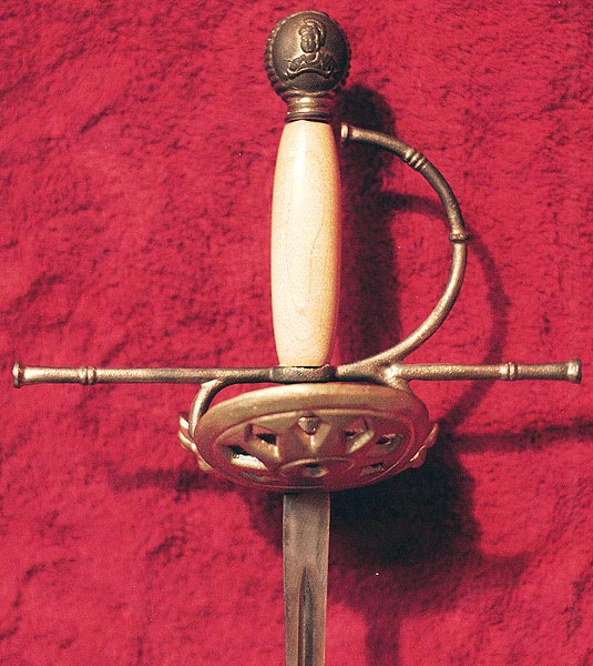 Shell ~ 348Fittings are Manganese Bronze Quillion: 8" Hilt: 7" Handle: 4" (Shown with Epee blade) NOTE: All weapons are made by hand and some individual differences may occur. We reserve the right to make substitutions of individual parts as dictated by stock on hand. |
