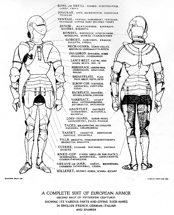 A quick breakdown of the different pieces that make up a Suit of Armour