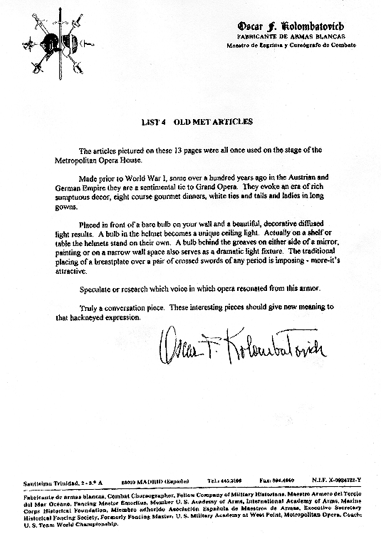 American Fencers Supply is please to have acquired some props from the Old Met Opera through Oscar Kolombatovich. These pieces were made in pre-World War I Austria and Germany. As working props for many years on stage, they show the marks of their contributions to many great productions. Speculate or research which hand held each hilt or which voice in which opera resonated from this armour.