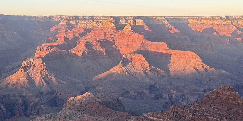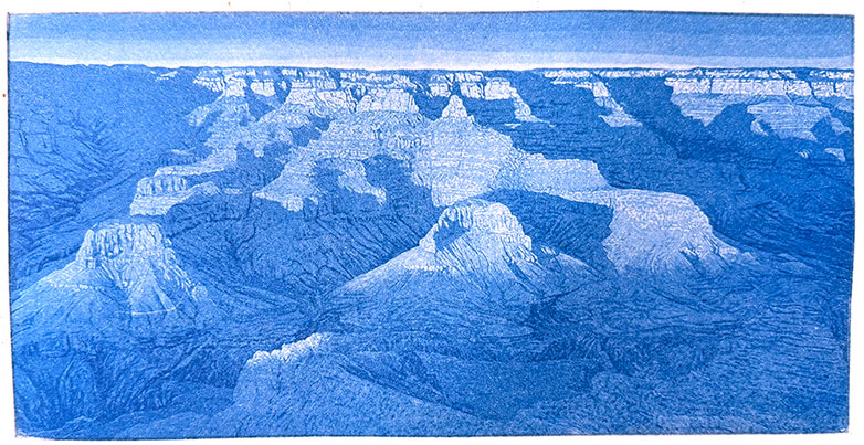 | This March I went on a road trip to New Mexico. On the way I walked along the south rim of the Grand Canyon. This new aquatint is of the canyon as the sun sets. | ||||||||||||