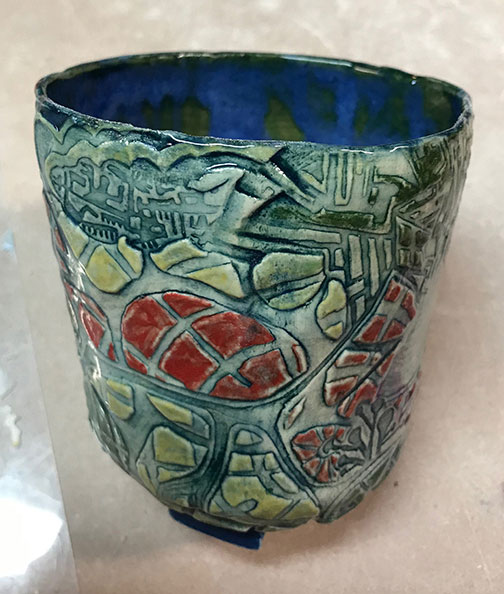 hand built and pressed into deeply etched plate