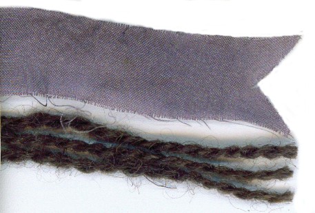 The only color to emerge from Gomphus clavatus was on wool and silk fibers pre-mordanted with iron(above). Alum pre-mordanted fibers showed no dye colors. The group decided that the color was deep enough after only 8 minutes. This was another one of the dyes that we processed by having the dyebath in a wide-mouth Mason glass jar in the boiling canning kettle. |