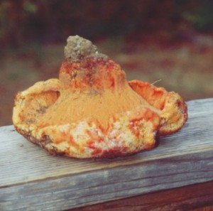 lactifluorum We peeled off the bright orange outer skin which is reputed to contain anthraquinone pigments, and used only that for the dye. Photo by Dorothy Beebee |