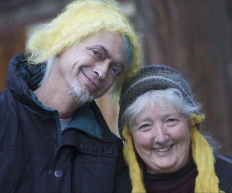 Tom Volk and Dorothy Beebee modelling the latest in Phaeolus schweinitzii hairpieces! Photo by Paul Stamets |