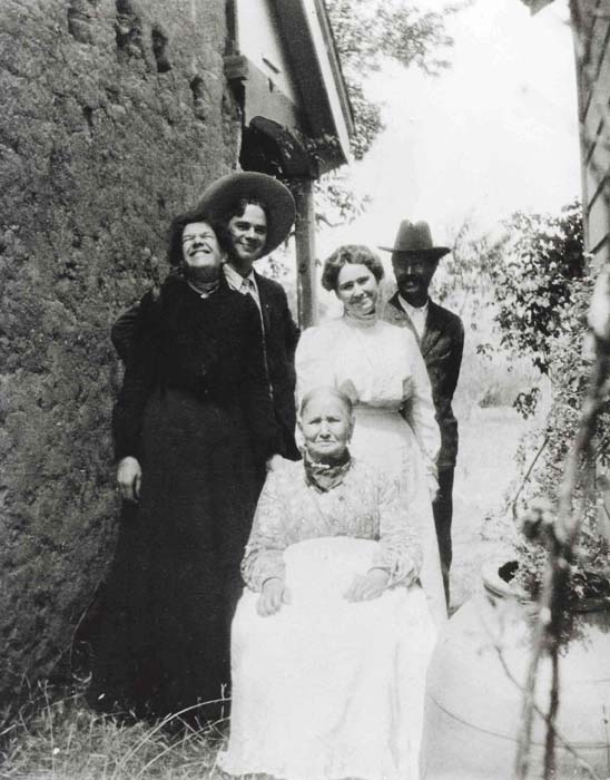 Alexander and her four children stand next to their adobe, circa 1900.