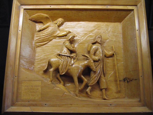 Outside the theater, we enjoy viewing the artwork of biblical scenes, and several older Bibles.