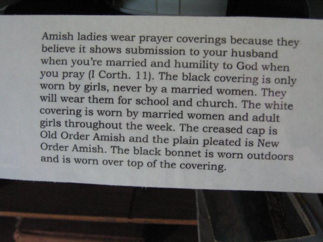 Prayer coverings worn by Amish women - explanation on the next page