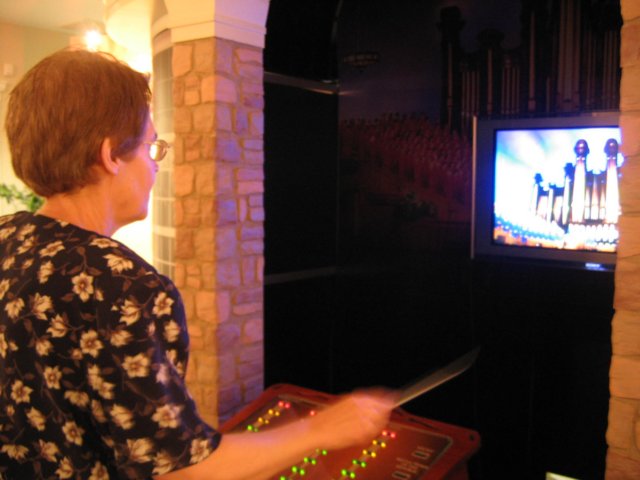 It was fun to lead the Mormon Tabernacle Choir. Using the electronic panel, we could choose one of several hymns and have the "choir" get louder/softer and emphasize different parts. We actually led arrangements of the songs the way the choir sings them, such as the arrangement of "Come, Come, Ye Saints" that they sing.