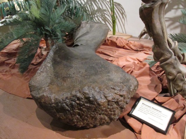 Dinosaur Humerus - A fossil of an upper arm bone found in Jensen, Utah with tooth marks of a carnivorous dinosaur on it.