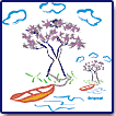 Symbols and Small File Sizes--Individuals who use such Macromedia software as Flash, Fireworks and Freehand will be familiar with the concept of symbols. Symbols are reusable and repeatable elements that can be used for almost anything. They are handy in creating navigation buttons, borders, map icons, and masses of graphics, such as foliage, snowflakes, and stars, and they can be comprised of either vector- or pixel-based images or text. The new symbols support in Illustrator 10 also helps you keep file sizes small and manage repeating elements efficiently. For instance, you can create a master graphic, save it as a symbol, and then add instances of the symbol to your design. File size is minimized because the instances reference the original symbol. This is markedly apparent when you export animations. Without symbols, each element in every frame is represented, resulting in bulky file sizes. Click on the top fish image to the left to view a Flash animation made with symbols in Illustrator. Automatic Updating--Another advantage is that when you edit or redefine a symbol, the instances update automatically. Yet, the transformations applied to the symbol instances, such as screening, tinting, resizing, and rotating, are maintained when the symbol is redefined. Symbol Libraries--The program also supports symbol libraries, so you can share symbols across multiple documents. Symbolism Tools-- Besides helping keep file size small, in Illustrator 10, symbols have become an invaluable design tool. You can create masses of natural-looking objects by simply defining a symbol, and then use the new Symbol Sprayer tool to add instances to your drawing. Then with other Symbolism tools, you can manipulate the instances and make each one look unique. There is also a Symbolism Tool Options dialog box to change the tool settings. See the two lower images to the left for a view of symbols, Symbolism Tools, and the dialog box. For the fish and bubble image to the left, I used the Symbol Sprayer to apply multiple instances of the symbols, and then used the other Symbolism tools to resize, spin, adjust opacity, and tint the fish and bubbles. There is a Break Link To Symbol option on the Symbols palette so that you can create a fully editable element, which I used for the two green fish in the image. The Symbol Sprayer is a great tool, fun to use, and a time-saver. No more tedious copying and pasting objects to create masses of similar objects. The Symbolism tools are: