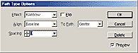 across a path, apply a distortion effect, or specify leading, kerning,