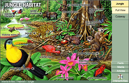 6. Interactivities. This feature makes researching complex topics fun and easy. Interactivities is a series of explorable networks that combine images, video, animations, and text to create in-depth views of several subjects. You can select an Interactivity from the main interactivity screen, then click any "hot spot" on the Interactivity to begin. You can navigate from section to section, or view related facts, media, and articles via the buttons on the right side of each Interactivity.