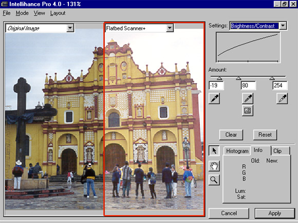 Advanced Beginners, Intermediate, and Advanced users. This is a great tool for anyone using Photoshop or Corel Photo-Paint. I would recommend users to have a basic grasp of these two programs, but it is an easy way for novices to learn to work with image enhancement and a wonderful compliment to any professional's digital tools. One important aspect of Extensis products is that they really are appropriate for a variety of users with different levels of experience. Intellihance Pro provides you with a range of options from completely automated (allowing the program to determine the best filter settings to enhance the image), to completely manual (allowing you to fine tune every setting).