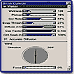 Painter 7 has new watercolor technology and advanced controls that allow you to produce images just like real watercolor. Traditional watercolor benefits from the diffusive nature of pigment suspended in water. For instance, as a pigment-laden brush touches wet areas on watercolor paper, the pigment diffuses into the wet areas. And depending on the existing wetness of the paper and any pigment already present on the surface, the colors bleed together, creating an intricate lacework of inter-merged strokes of color. Painter 7 recreates this process by letting you control the wetness and evaporation rate of the paper. The interaction of these physical components simulates the diffusion and drying of a waterborne dye. This is a welcome improvement. Also, in previous versions of the program, if you applied a water color brush stroke, they were applied to the Canvas layer, and as such, were uneditable. With Painter 7, you can edit the water color layer, including erasing and blurring, without changing anything in the image layer. The Water section of the Brush Controls palette contains the following controls for customizing Water Color brushes: