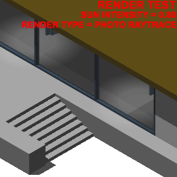 Before you can perform a Render test, you will need Lights or you will not see any Shadows. The easiest Light to create is also one of the most important in architecture: the Sun. Illustrated to the right, I show the basic steps required to create a Sun in any Rendering drawing file. For the Barcelona Pavilion example I show that on the Lights dialogue box, I have set the Light Type to Distant Light and then used the New... button to access the Modify Distant Light dialogue box. On the Modify Distant Light dialogue box, I show that I have given my New Distant Light ( or Sun ) a Light Name ( S_6-21_N ), turned Shadows On and specified that I want RayTraced Shadows. I have also used the Sun Angle Calculator... button to access the Sun Angle Calculator dialogue box. On the Sun Angle Calculator dialogue box, I show that I have set a Date, Time, Time Zone ( GMT/WET because there was no GMT+2 which is what Spain uses ) and activated Daylight Savings time. I have also used the Geographic Location... button to access the Geographic Location dialogue box. On the Geographic Location dialogue box, I show that I have set the Continent drop-down list to Europe, checked the Nearest Big City checkbox and found the Latitude and Longitude of Barcelona Spain. Now OK all of the way back out.