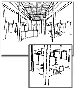 Generally speaking, you can count on most clients using 15 - 17 inch monitors with a resolution setting of 800x600 pixels or greater. We at ARCHIdigm shoot for the CAD user crowd and build everything for 1024x768 pixel resolution. To present graphic images on the web for others to view, you can basically just copy the .gif, .jpg or .png to a website or FTP folder and give the full path to anyone you want to see it. However, it is often a lot nicer to use an .html file for formatting purposes so the image may be centered, on a colored background and annotated with a title or other information. This page you are currently reading is an example of how an .html page can be used to illustrate images and text. All of the images you see on this page come in through a linking system similar to AutoCAD's Xref system but the text, cells and colors are all written in .html code for your browser to interpret. If you click the right button on your mouse and select the View Source option on the pop-up menu, you will see all of the .html code used to format this page. You should also see all of the links to the various images. |